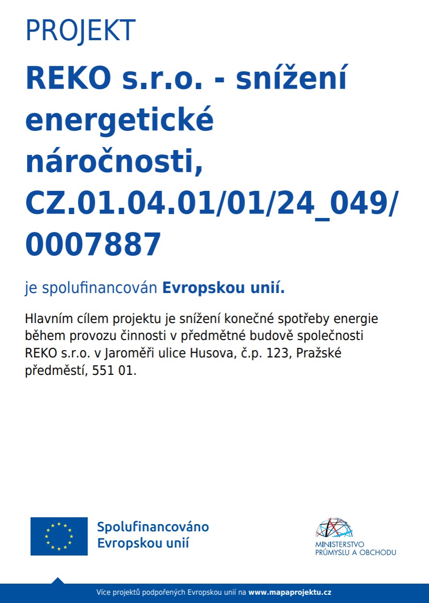 Zahajujeme projekt REKO s.r.o. – snížení energetické náročnosti, díky kterému dojde k modernizaci budovy a snížení její energetické náročnosti.